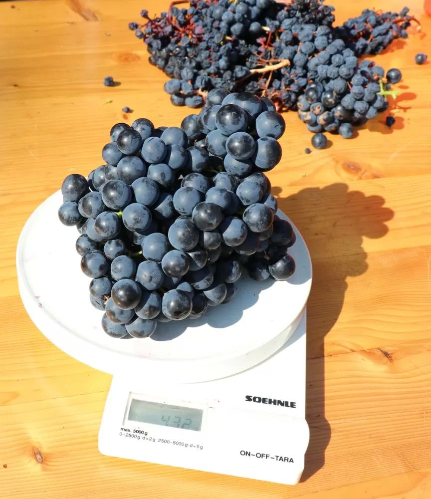 Das Jahr 2022 war im Gegensatz zum 2021 ein ausserordentlich gutes, was die Qualität und Quantität unserer Trauben angehen. Insgesamt konnten wir 347 Kilo Trauben ernten. Aufgeteilt in 131 kg Léon Millot und 216 kg Cabernet Jura. Das Mostgewicht resp. Oechslegrade betrugen beim Léon Millot 113° und beim Cabernet Jura 98° Grad. Diese Werte sind massgeblich höher als der Durchschnitt der letzten Jahre. Im Jahr 2021 wies der Léon Millot 95° und der Cabernet Jura 88° Grad aus.